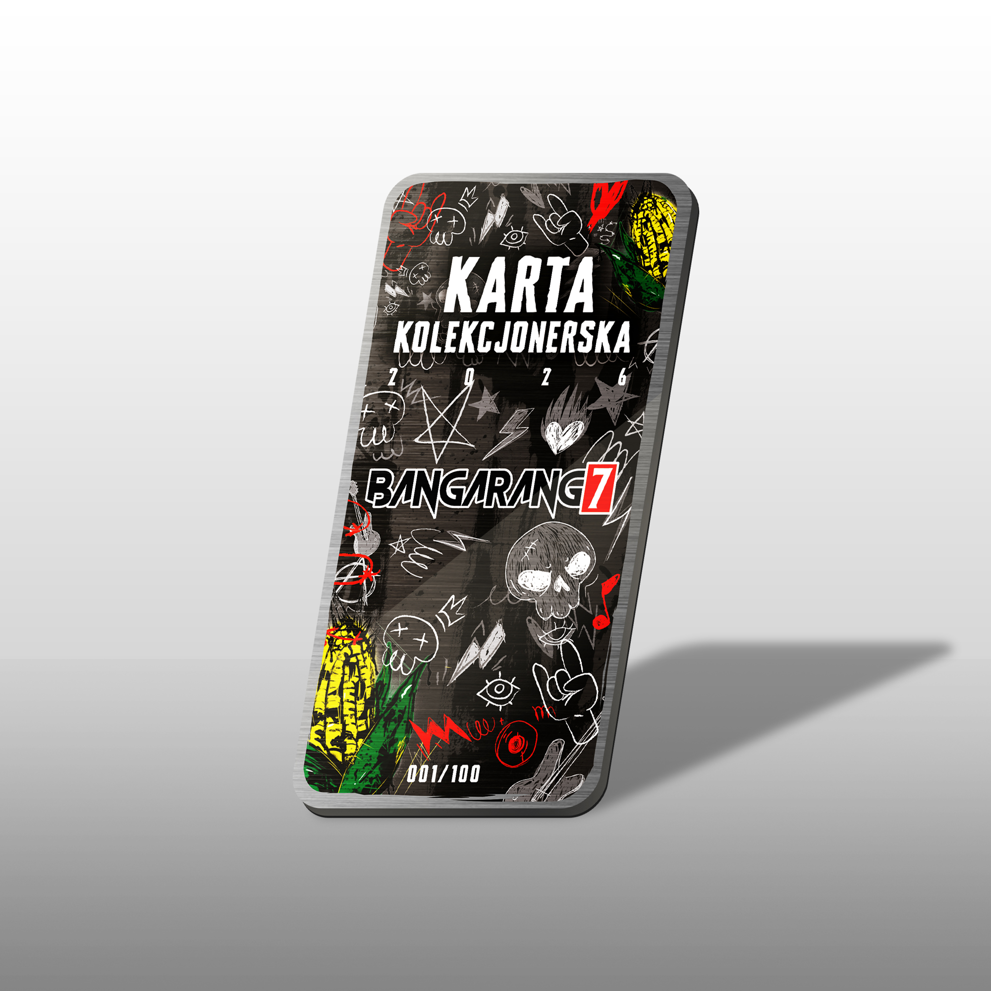 Wyjątkowa Karta Kolekcjonerska BANGARANG 7, która nie tylko pięknie się prezentuje, ale także uprawnia do wstępu na teren festiwalu podczas 7. edycji Bangarang Festival, odbywającej się w dniach 26–27 czerwca 2026 roku.